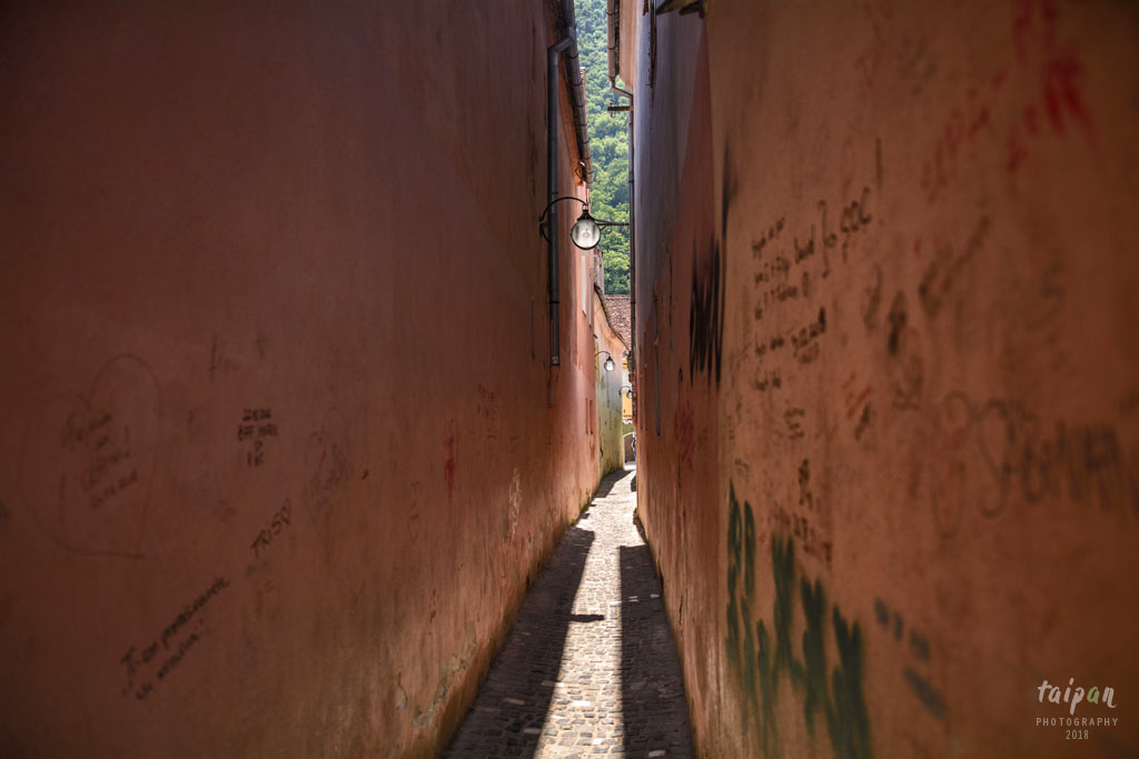 Wąska uliczka Strada Sforii, czyli ul. Sznurowa. Jest jedną z najwęższych ulic w Europie. Ma zaledwie 1,3 m szerokości.