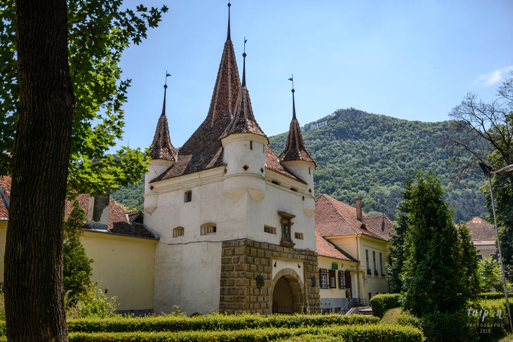 Brama Katarzyny z 1559 r. przy murach miejskich, ze strzelistymi wieżyczkami. W tle znajduje się wzgórze Tampa.