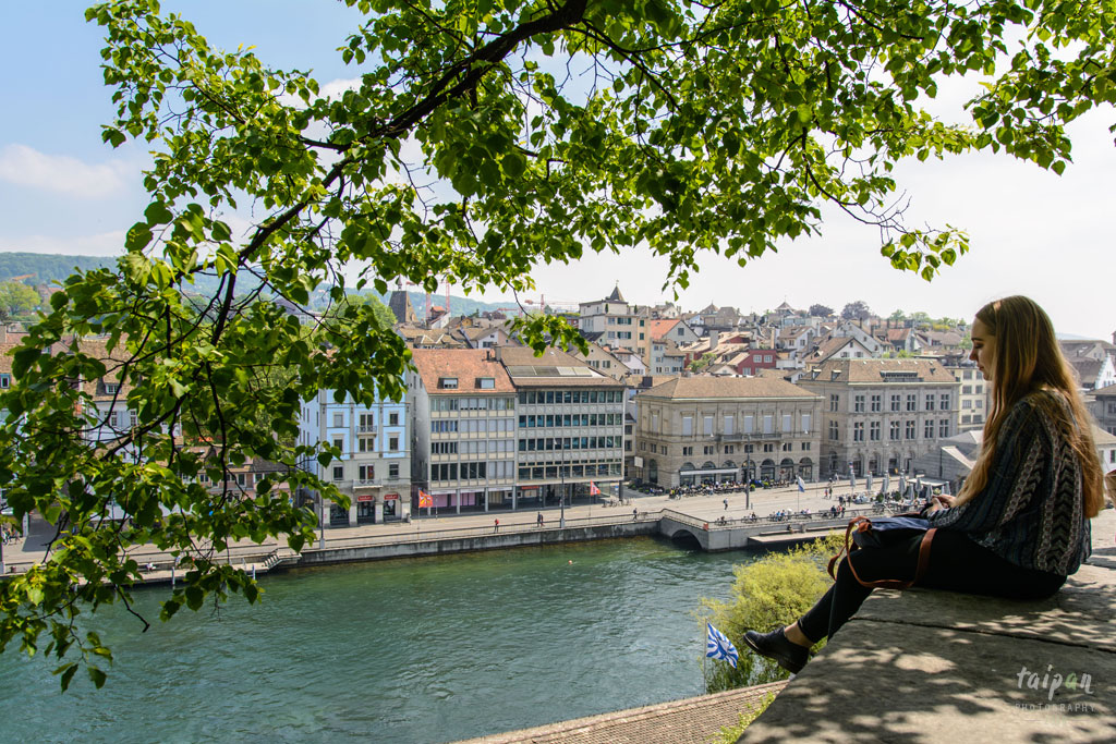 Dziewczyna siedząca na murku w parku Lindenhof