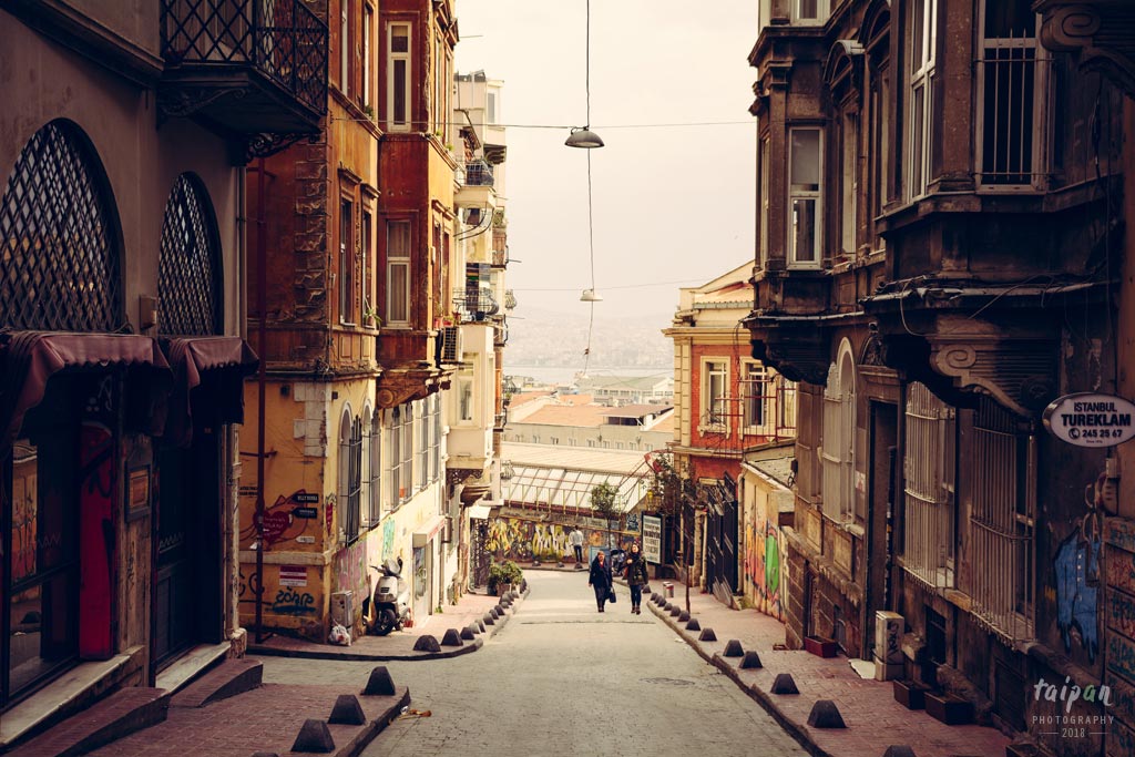 Cieśnina Bosfor wychodząca zza budynków Beyoğlu
