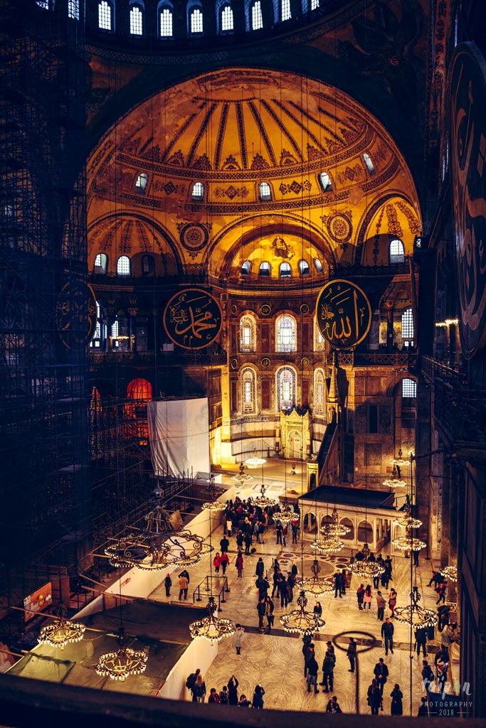 Wspaniałe wnętrzne Hagia Sofii, który pełnił dawniej rolę bazyliki chrześcijańskiej, a następnie meczetu