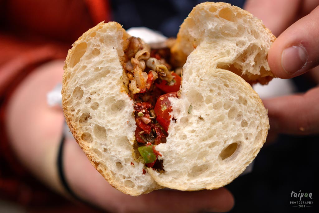 Kokoreç w bułce - w wersji tureckiej środek wypełniony jest farszem z jagnięcych jelit