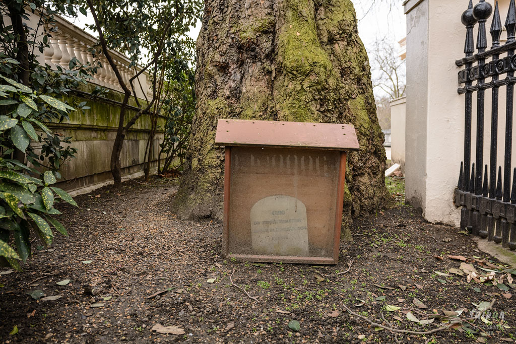 Miejsce pochówku psa Giro, którego właścicielem był nazistowski ambasador Leopold von Hoesch. Obok mieściła się ambasada Niemiec. Pies zdechł w 1934 r. od porażenia prądem.