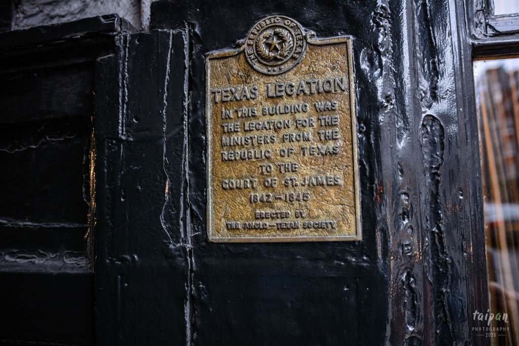 W Londynie w połowie XIX w. znajdowała się niewielka Ambasada Teksasu. Stan ten w latach 1936-1945 był republiką. Do dzisiaj ostała się tylko upamiętniająca tabliczka.
