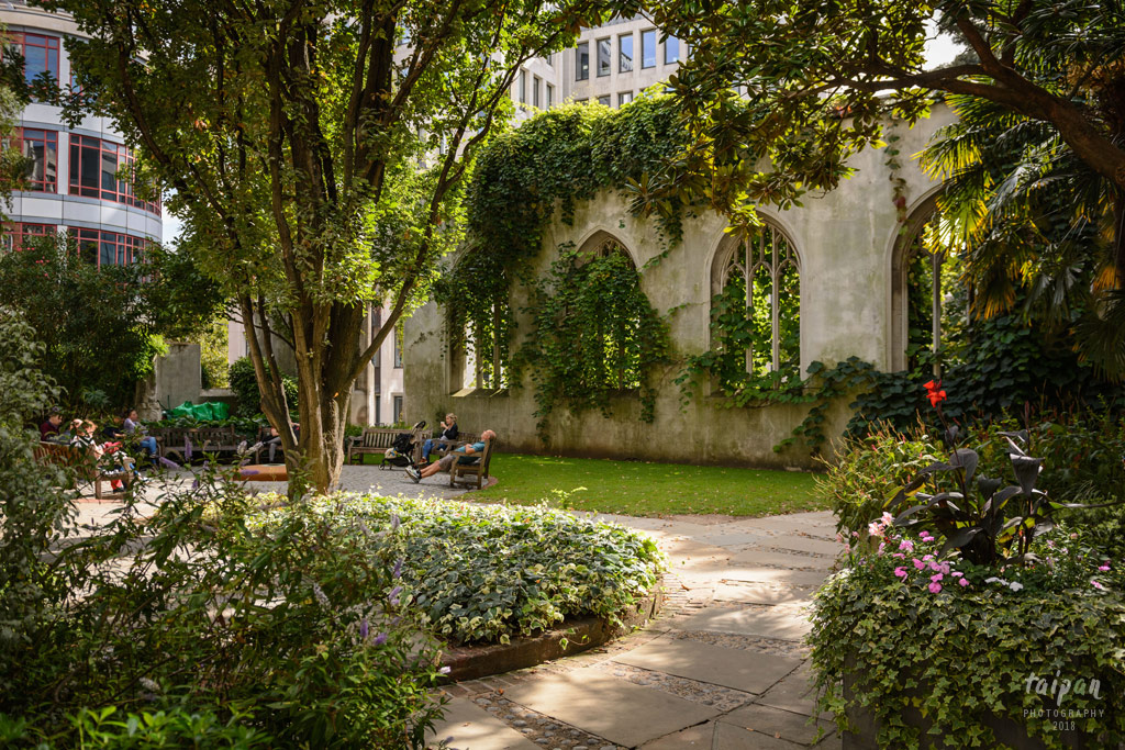 Zniszczony w dużym stopniu podczas II wojny światowej kościół St Dunstan-in-the-East został zaadoptowany na ogród miejski