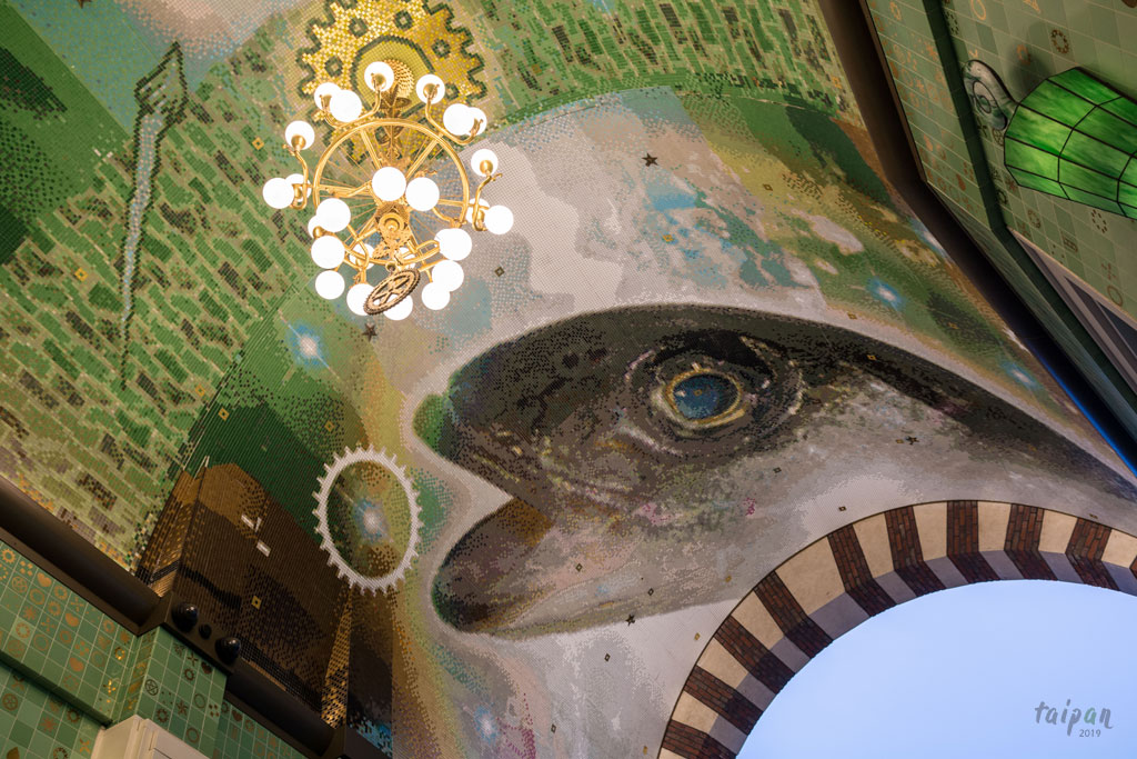 Ryba na mozaice sklepienia Oersoep, w artystycznym pasażu Beurspassage z wodnymi motywami, opowiadającymi o szlakach wodnych Amsterdamu