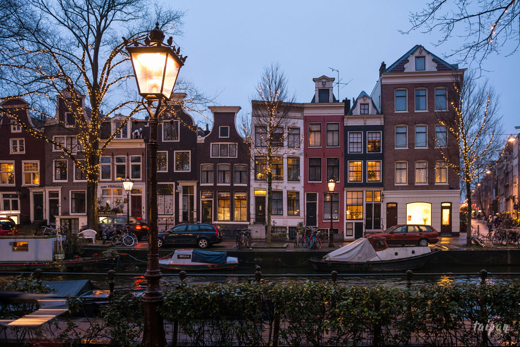 Kolorowe, krzywe, falujące, wąskie, o różnej wysokości - kamienice w Amsterdamie to prawdziwa mozaika budownictwa. Niektóre budynki odstają od pionu prawie jak Krzywa Wieża w Pizie; zastanawia mnie jak muszę one wyglądać wewnątrz. Na zdjęciu okolice Rijksmuseum.