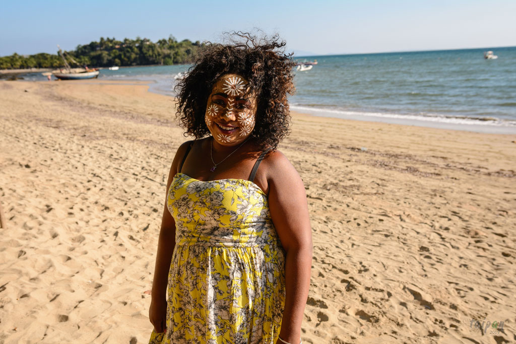 Malgaskie kobiety często zdobią swoje twarzy motywami kwiatów, które jednocześnie spełniają funkcję ochrony przeciwsłonecznej