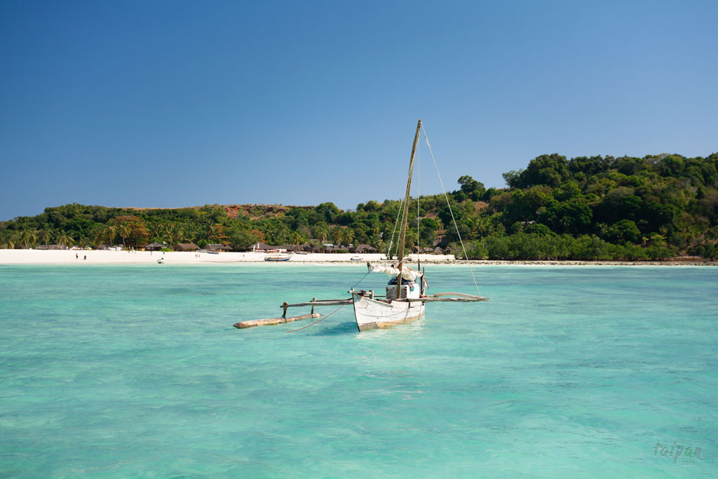 Drewniana łódź unosząca się na przezroczystej wodzie oceanu