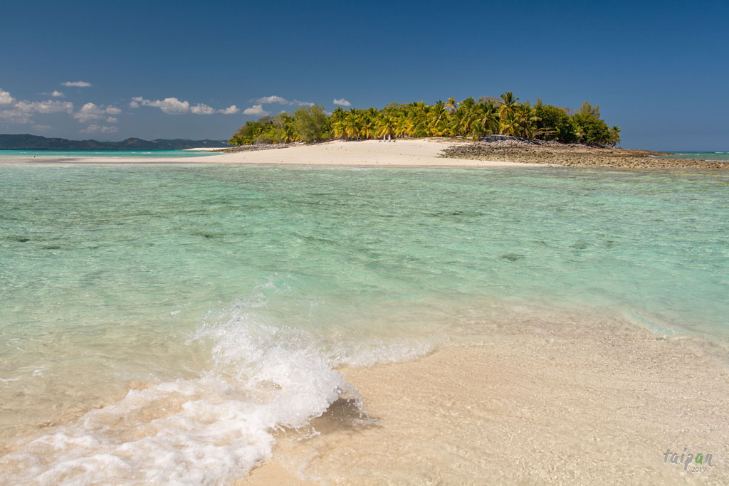 Przypływ wzbiera i powoli zatapia piaszczystą groblę, odcinając część wyspy od reszty.