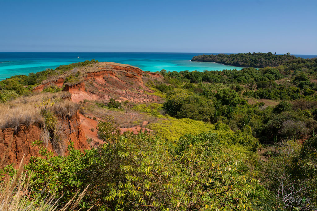 Soczyste kolory Madagaskaru - zielona roślinność połączona z pomarańczową ziemią i lazurowymi wodami oceanu