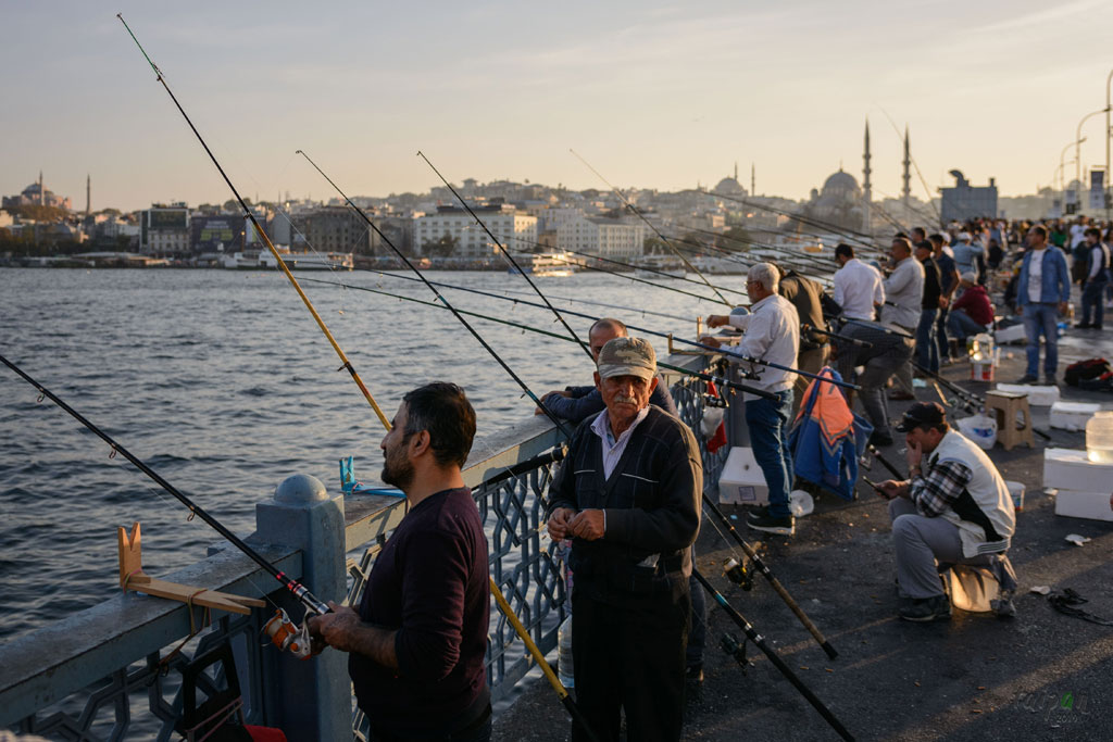 Nieugięci wędkarze łowiący z mostu Galata