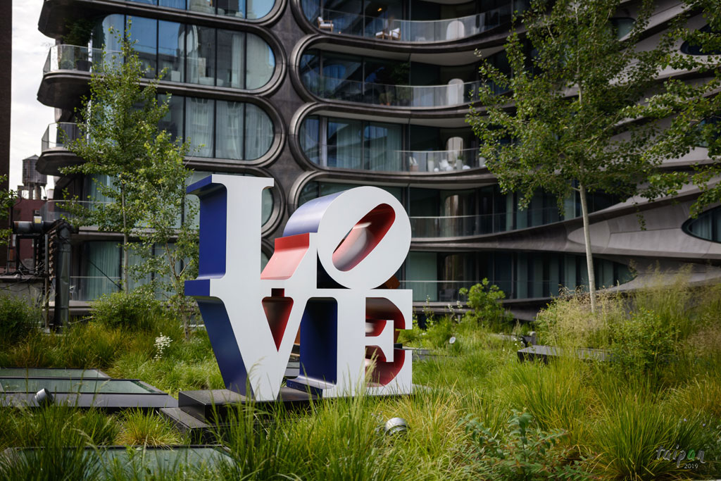Napis LOVE w parku High Line zbudowany na dawnej linii kolejowej