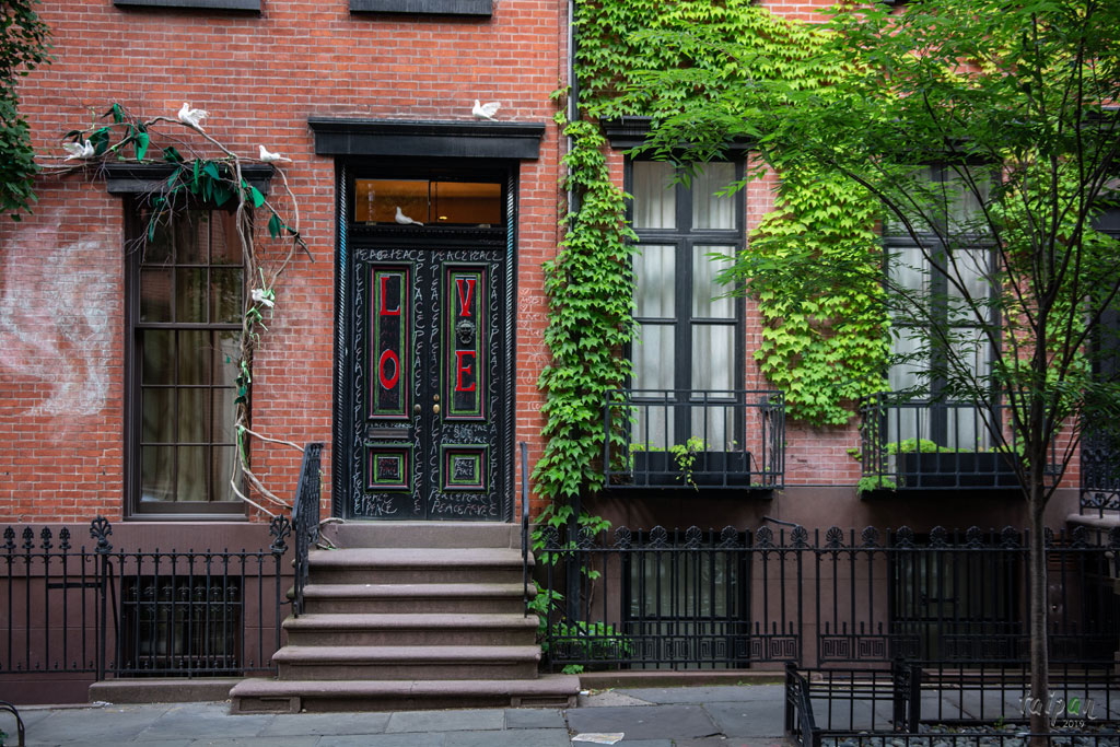 Napis LOVE na jednym z wejść do budynków w West Village na Manhattanie