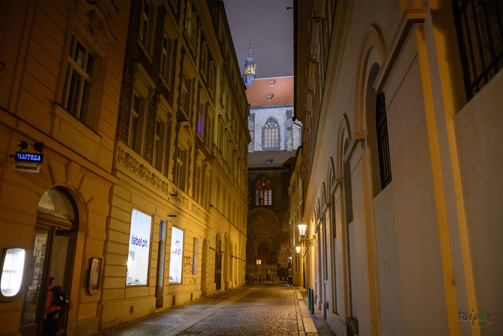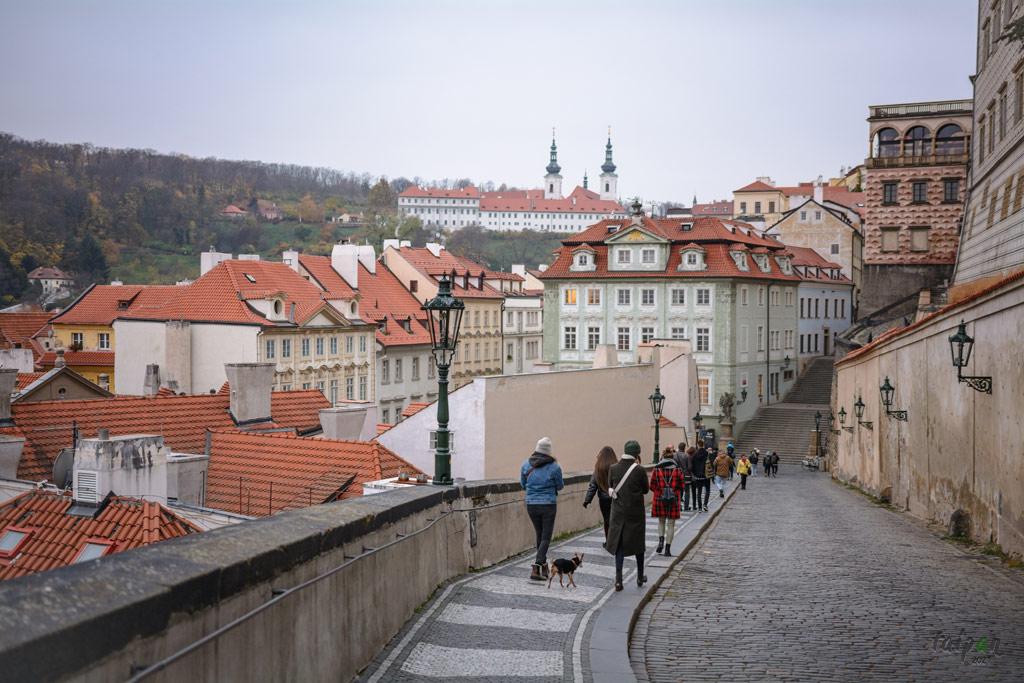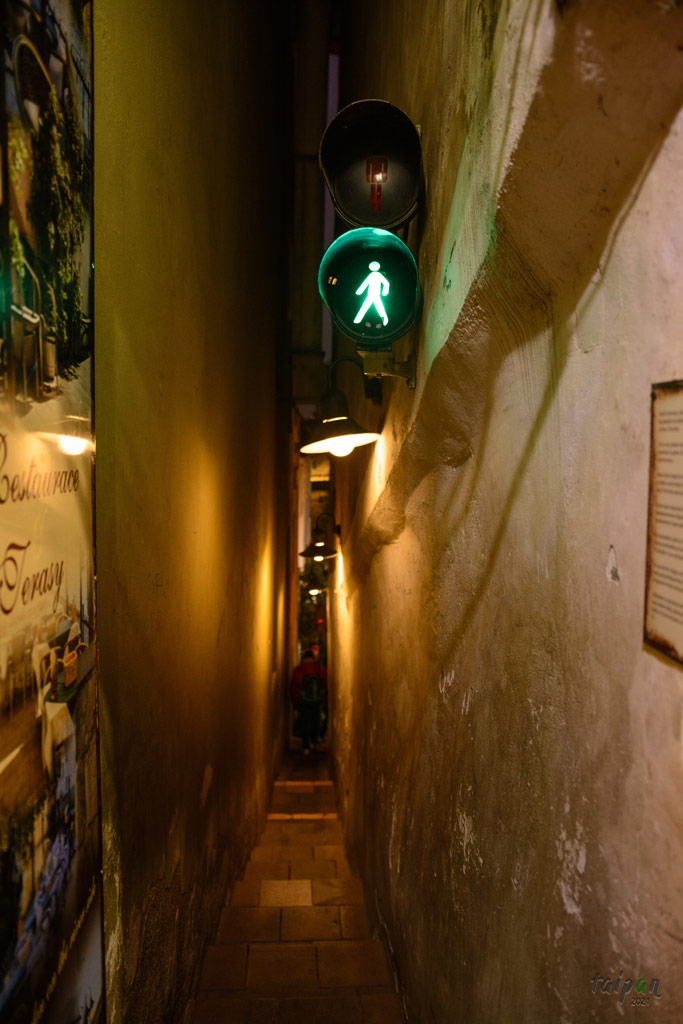Najwęższa ulica/schody Pragi na Małej Stranie, gdzie ustawiono nawet znaki świetlne