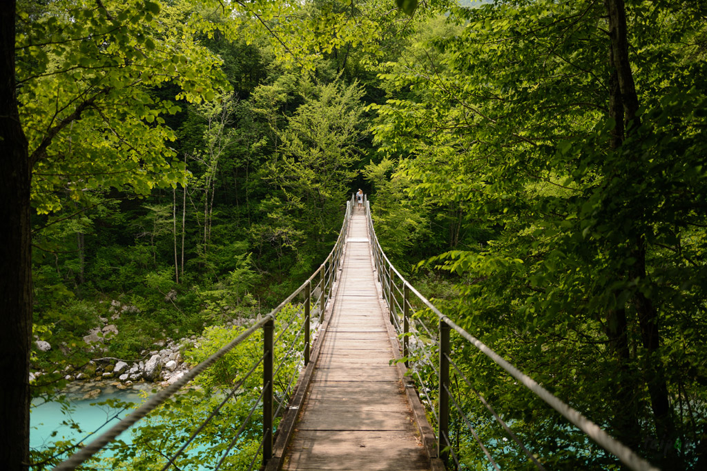 Drewniana kładka w pobliżu wodospadu Kozjak.