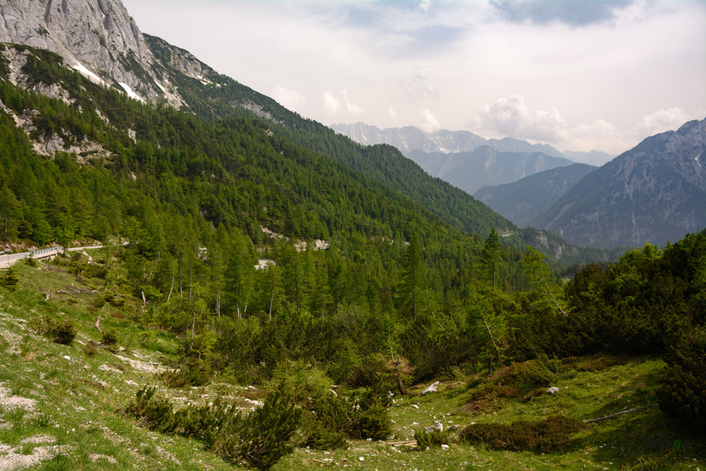 Alpy Julijskie w Parku Narodowym Triglav. Od strony Włoch znajduje się przełęcz Vršič, z samochodową trasą widokową.