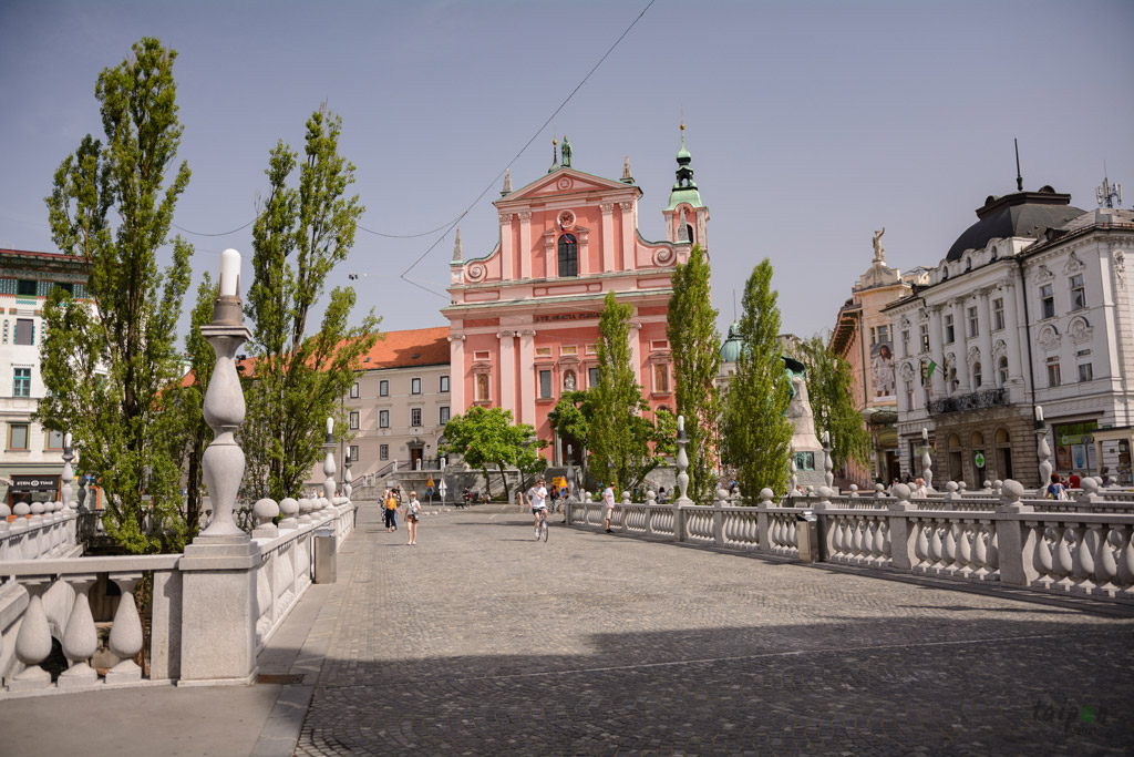 Potrójny Most z barokowym kościołem Zwiastowania.