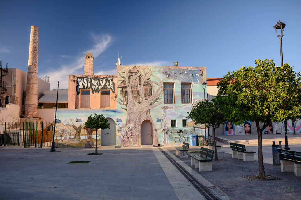 Mural "Domek na drzewie" na jednym z budynków przy meczecie