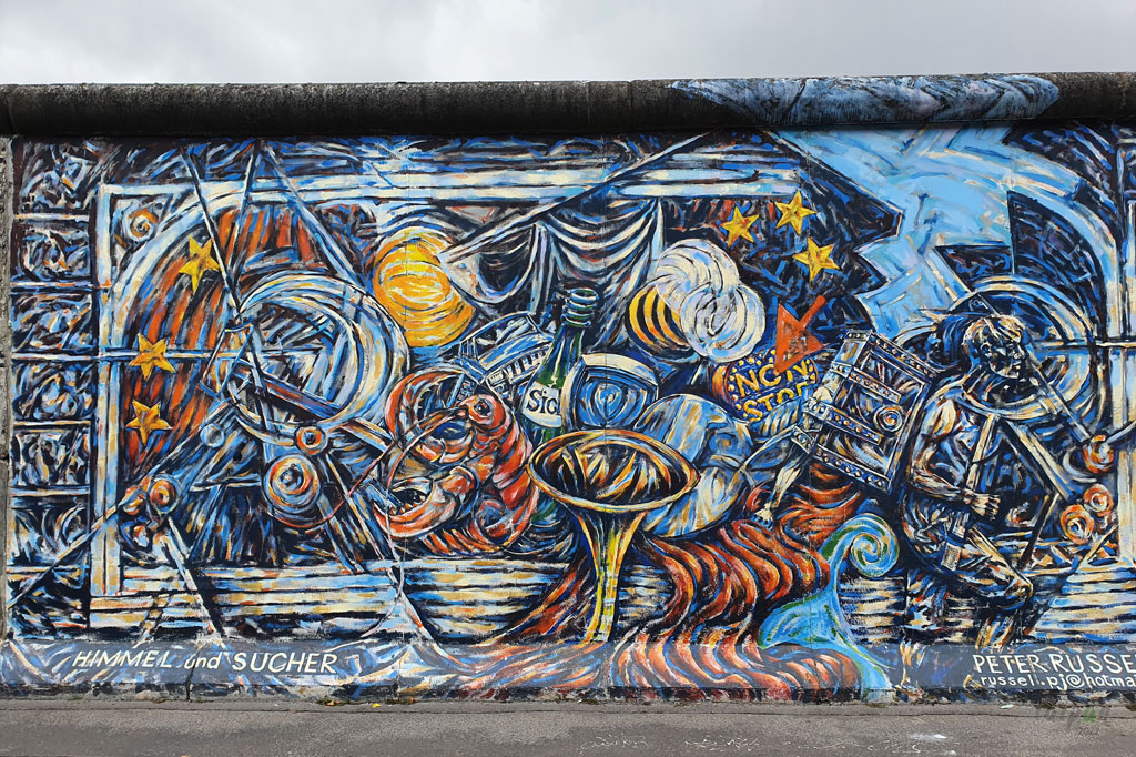 "Niebo i wizjer" autorstwa Petera Russella. East Side Gallery to galeria-pomnik dla wolności stworzony przez artystów z całego świata na kawałku Muru Berlińskiego o długości ok. 1,3 km