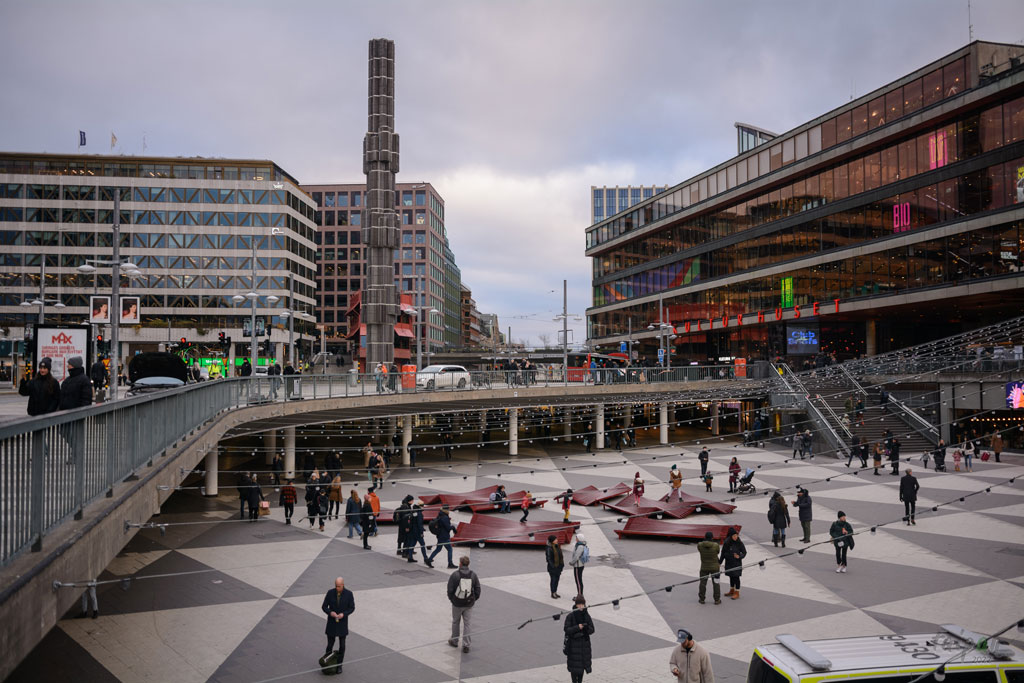Plac Sergela (Sergels torg) w dzielnicy Norrmalm z charakterystycznym obeliskiem "Kryształowy Pionowy Akcent w Szkle i Stali".