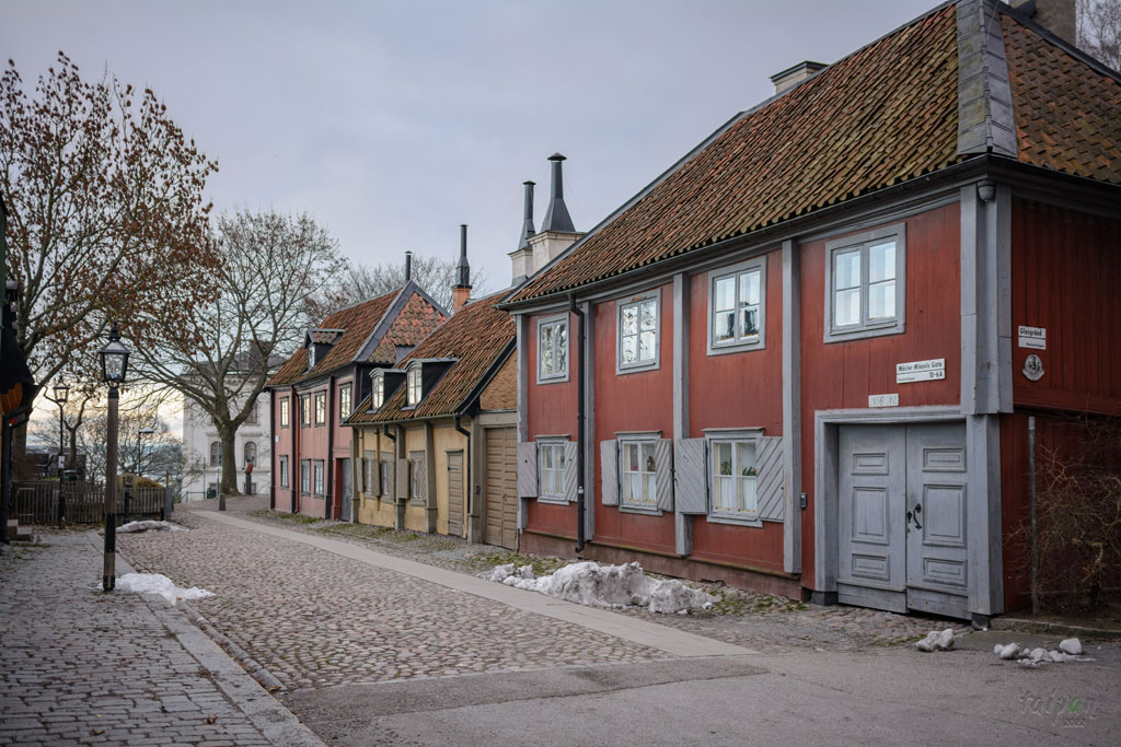 Mäster Mikaels gata to mała uliczka z drewnianymi domkami.