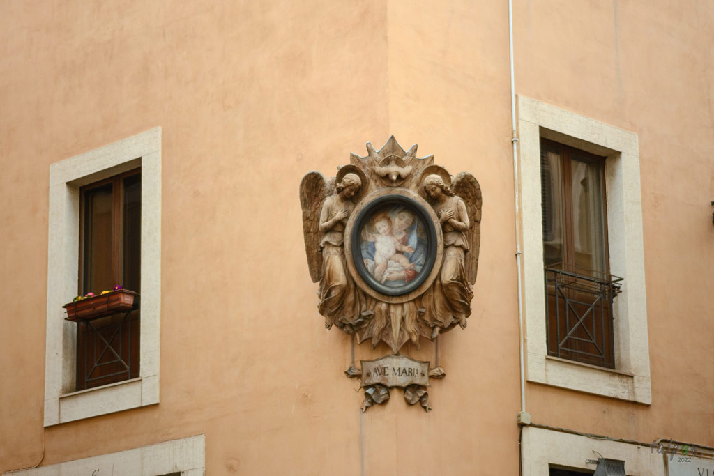 Rzeźba z Matką Boską i Jezusem na jednej z kamienic.