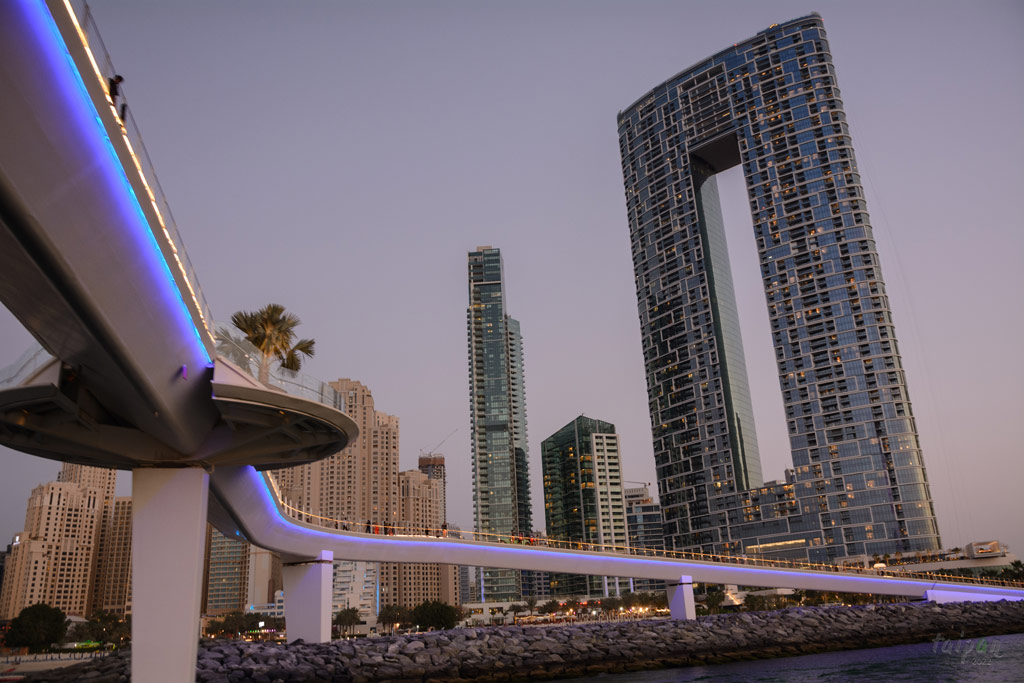 Most Bluewaters z ciekawym budynkiem Address Beach Resort w tle