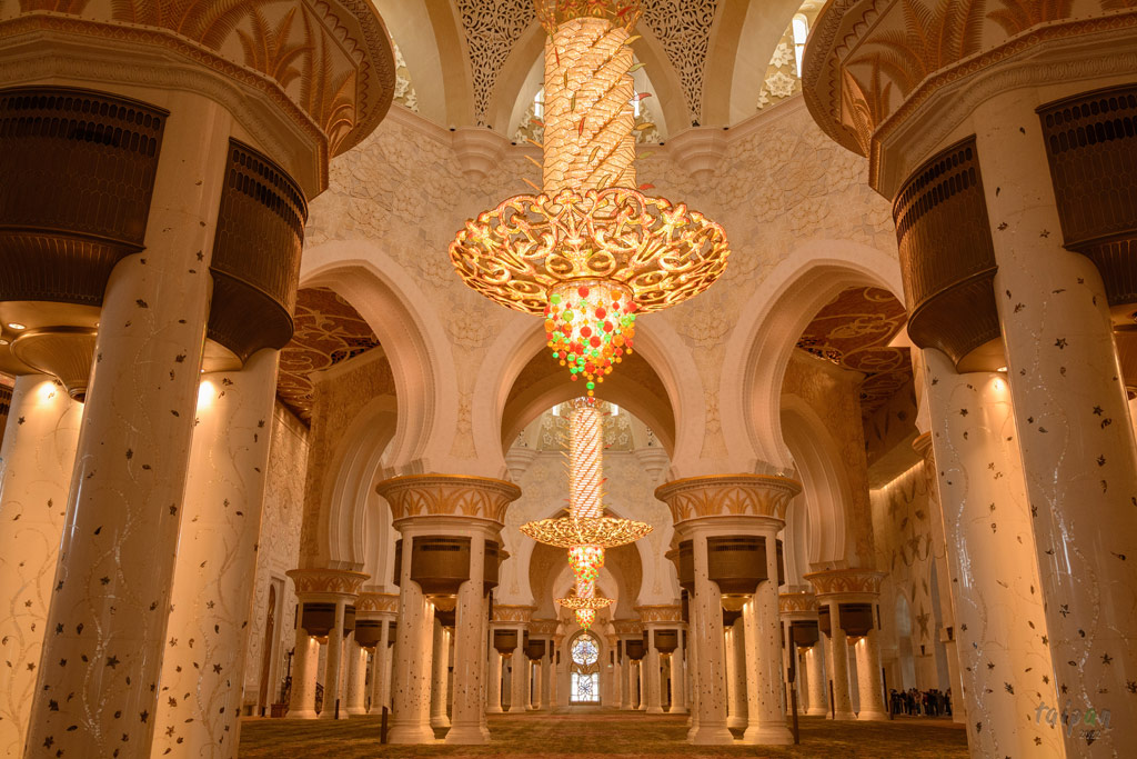 W meczecie znajduje się siedem pozłacanych żyrandoli, wykonanych z kryształów Swarovskiego; największy z nich jest jednocześnie największym na świecie żyrandolem.