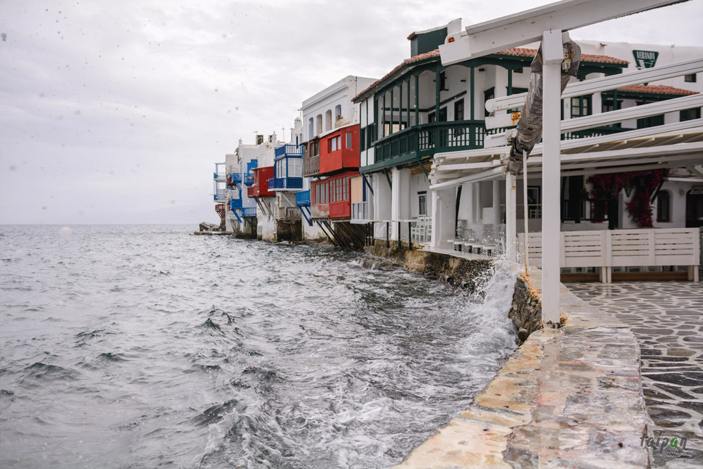 Little Venice (Mała Wenecja) jest jednym z chętniej odwiedzanych miejsc na Mykonos. To kilka malowniczych domów stojących nad brzegiem morza. Dawniej była to osada rybacka, założona przez najbogatszych mieszkańców wyspy.