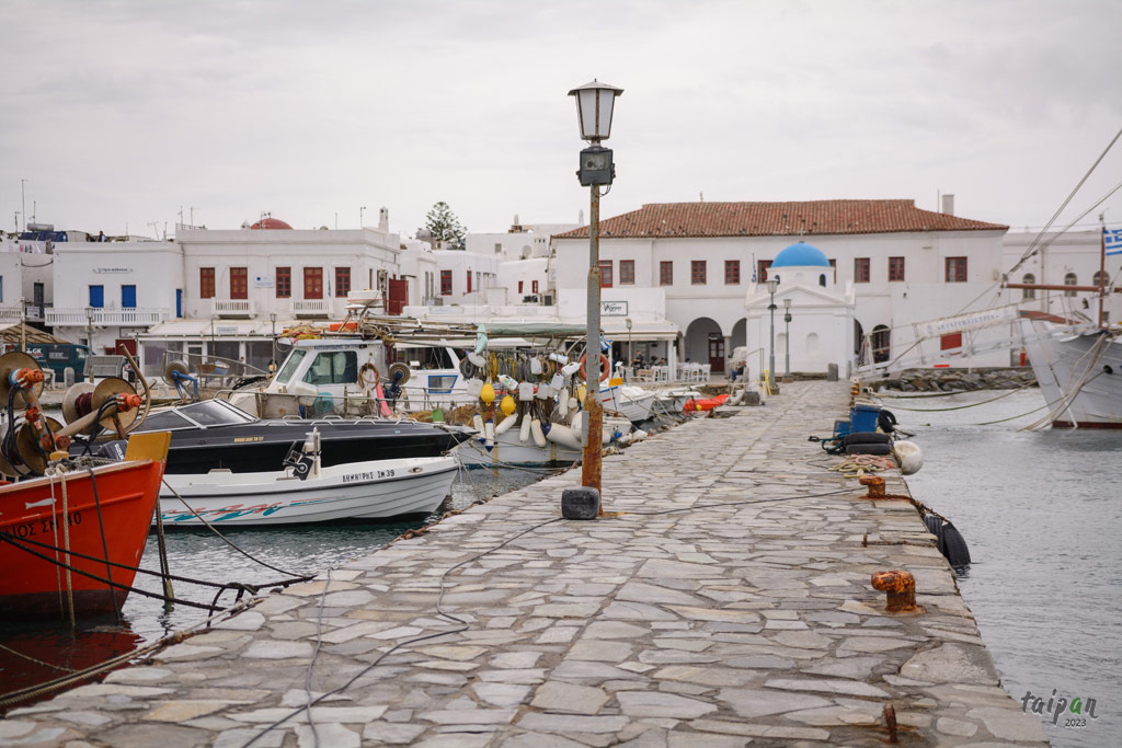 Przystań dla łodzi z cerkwią Świętego Mikołaja z Kadeny w tyle.