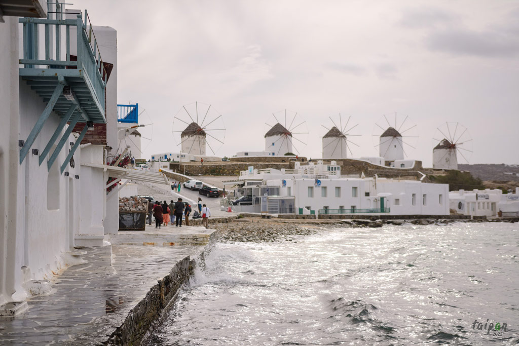Słynne wiatraki na Mykonos zlokalizowane są na wzgórzu, tuż obok Little Venice.