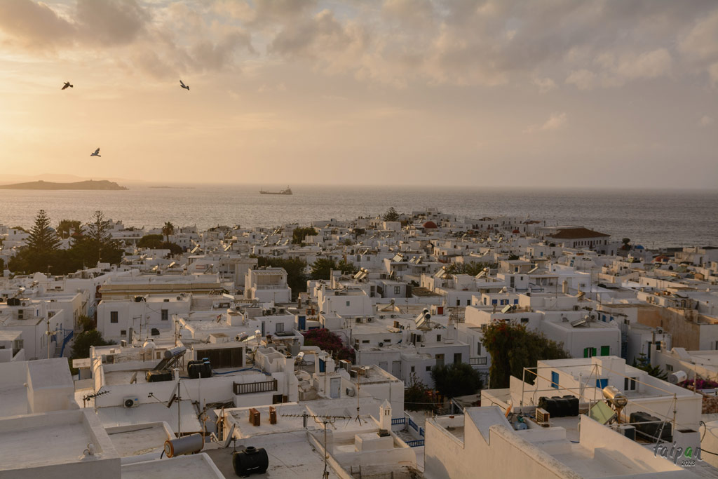 Białe kamienice w centrum Chory o zachodzień słońca.
