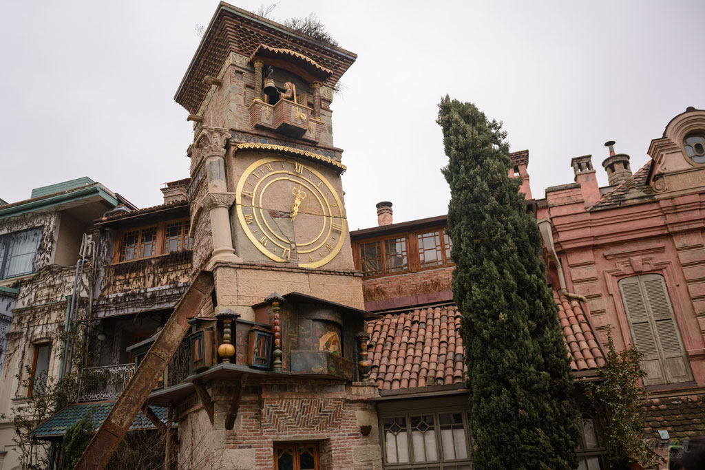 Krzywa wieża zegarowa choć wygląda na starą, to pochodzi z 2010 roku. O godzinie 12:00 i 19:00 odbywa się na niej spektakl życia pod tytułem "Cykl życia".