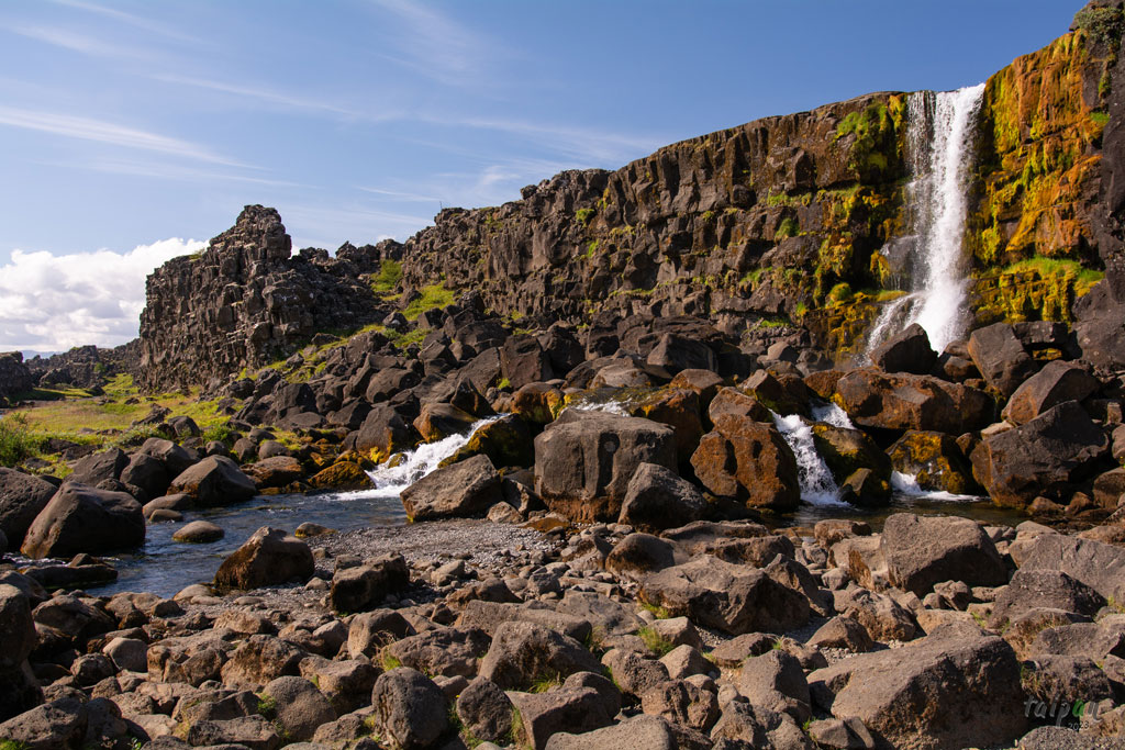 Mały, ale pięknie położony między skałami ryftu wodospad Öxarárfoss.