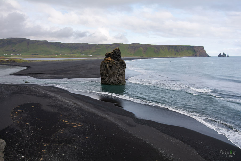 Plaża Reynisfjara widoczna z klifu.