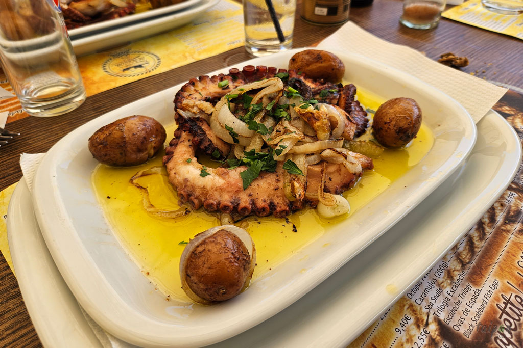 Przepyszna ośmiornica podana z cebulą w zalewie z oliwy.