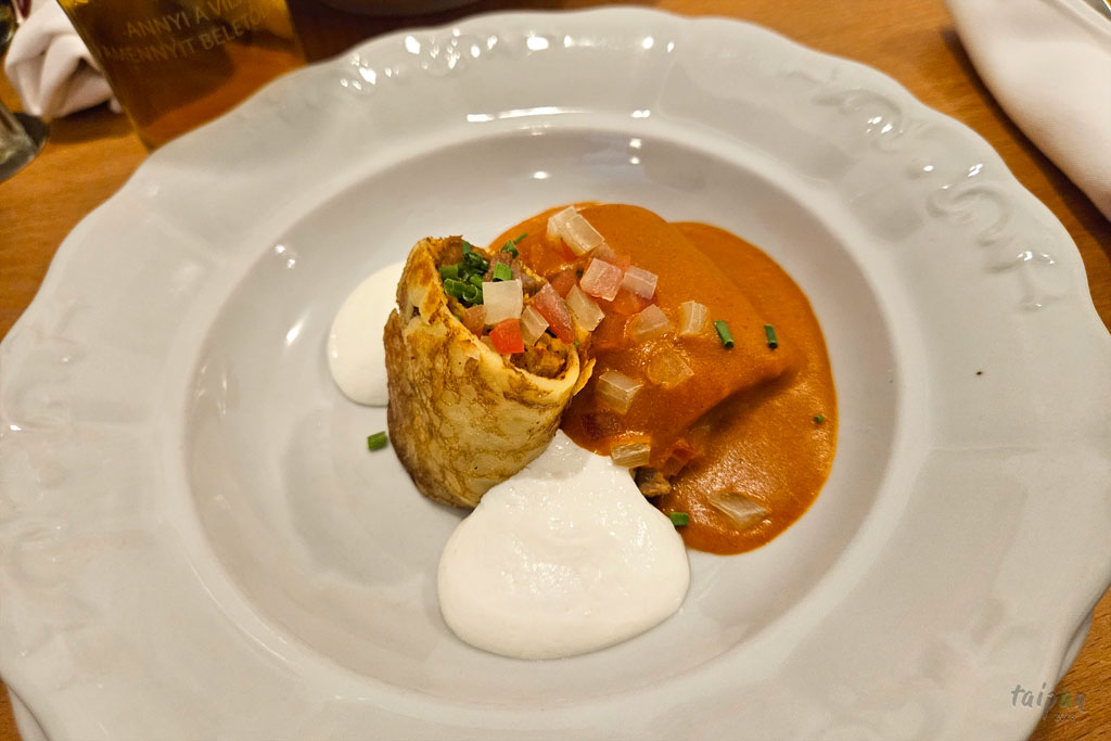 Naleśniki Hortobágy – popularne danie kuchni węgierskiej. Naleśniki nadziewane gulaszowym mięsem cielęcym, zawinięte w "kopertę" i polane sosem śmietanowo-pomidorowym.