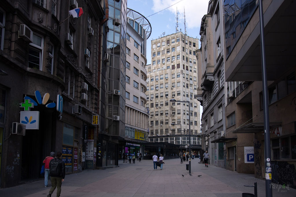 Ulica Sremska i zróżnicowany krajobraz centrum miasta.