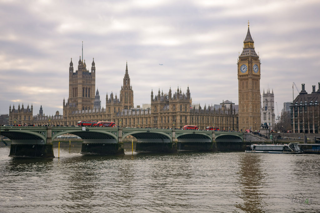 Westminster Bridge z Big Benem i Pałacem Westminsterskim w tyle