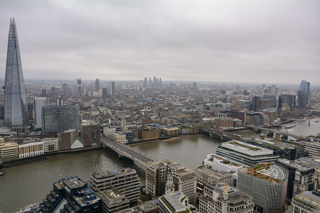 Widok na najwyższy budynek Wielkiej Brytani - The Shard po lewej stojący w pobliżu Tamizy.
