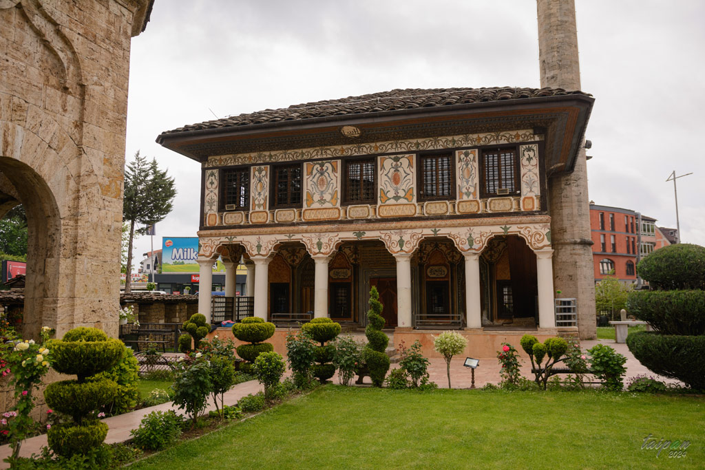 Meczet Šarena Džamija został zbudowany w 1438 roku, a przebudowany w 1833 roku. W 2010 roku zakończono renowację malowideł zewnętrznych, a w 2011 roku dzięki dotacji USA zrekonstruowano i zakonserwowano fasadę. Część elewacji przypomina chińską grę Mahjong.