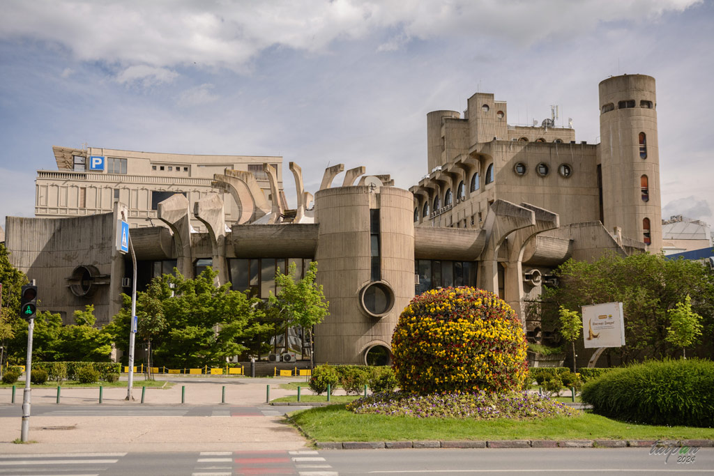 Skopje, stolica dawnej Jugosłowiańskiej Socjalistycznej Republiki Macedonii, w znacznej mierze brutalistyczne oblicze uzyskało w wyniku odbudowy po trzęsieniu ziemi w 1963 roku. Na zdjęciu budynki Centrum Telekomunikacyjnego i Siedziby Poczty według projektu Janko Konstantinova.