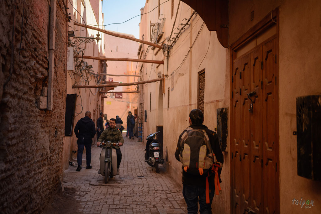 Od strony wschodniej medyny jest znacznie mniej suków. W 2023 roku Maroko, w tym Marrakesz nawiedziło potężne trzęsienie ziemi, które naruszyło wiele budynków. Niektóre są ratowane jak na zdjęciu, niektóre zostały spięte liniami.
