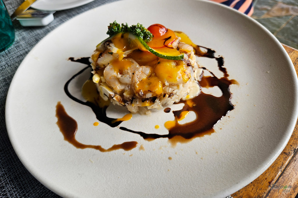 Sałatka z sercem palmy, z krewetkami, w sosie mango.