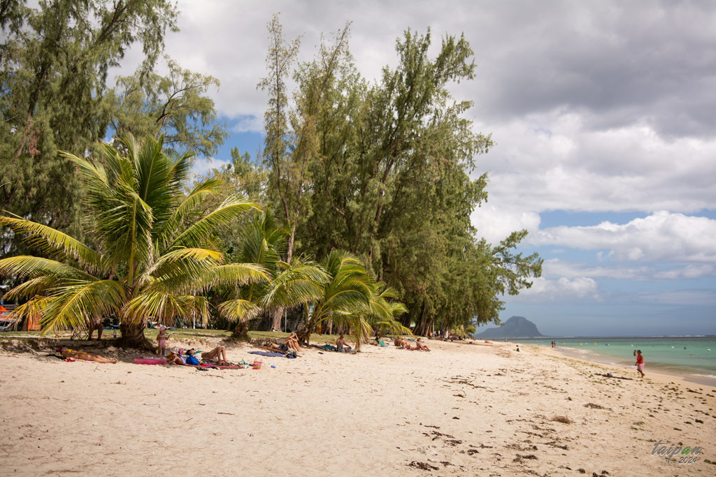 Plaża Flic en Flac z charakterystycznymi drzewami kazuaryna