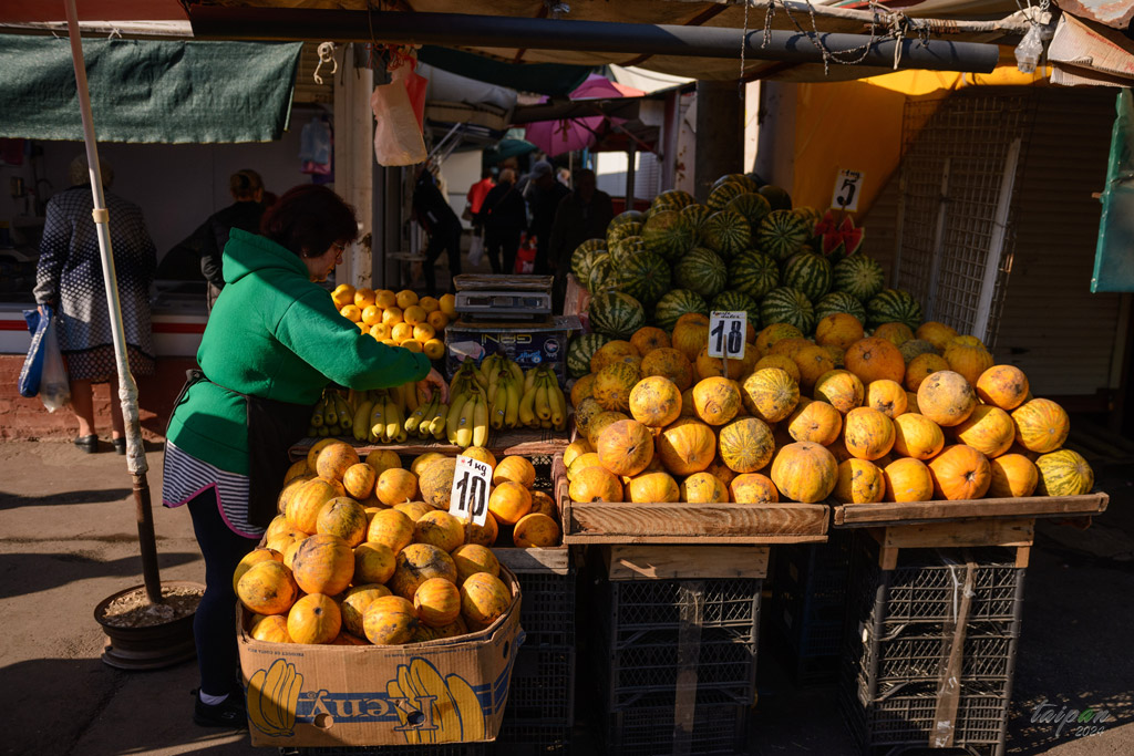 Stoisko z owocami na targu Piața Centrală (Placu Centralnym).