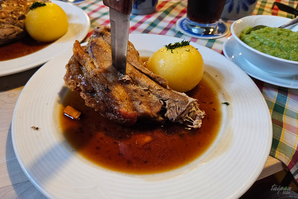 Frankońska Schäuferla wytwarzana z mięsa łopatki wieprzowej podana z knedlem Kloß