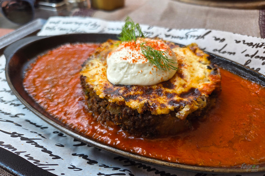 Bułgarska musaka, którą przygotowuje się na bazie ziemianków, pomidorów oraz mielonego mięsa.