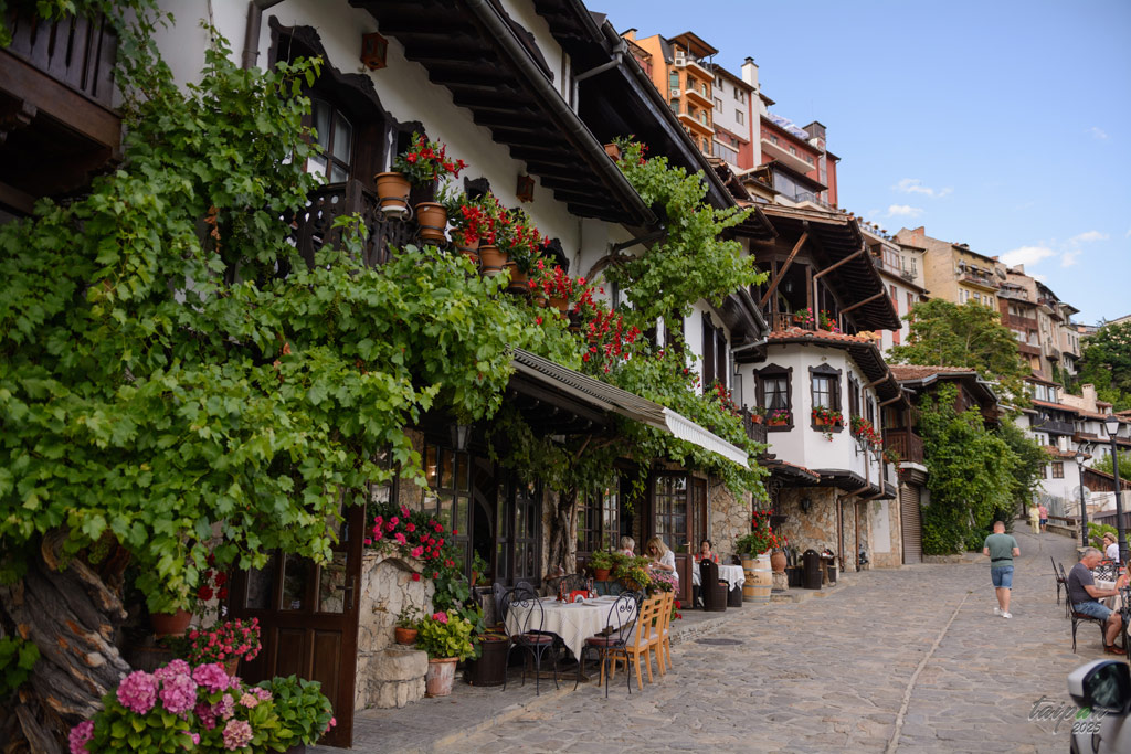 Ulica General Gurko z pięknymi ukwieconymi budynkami.